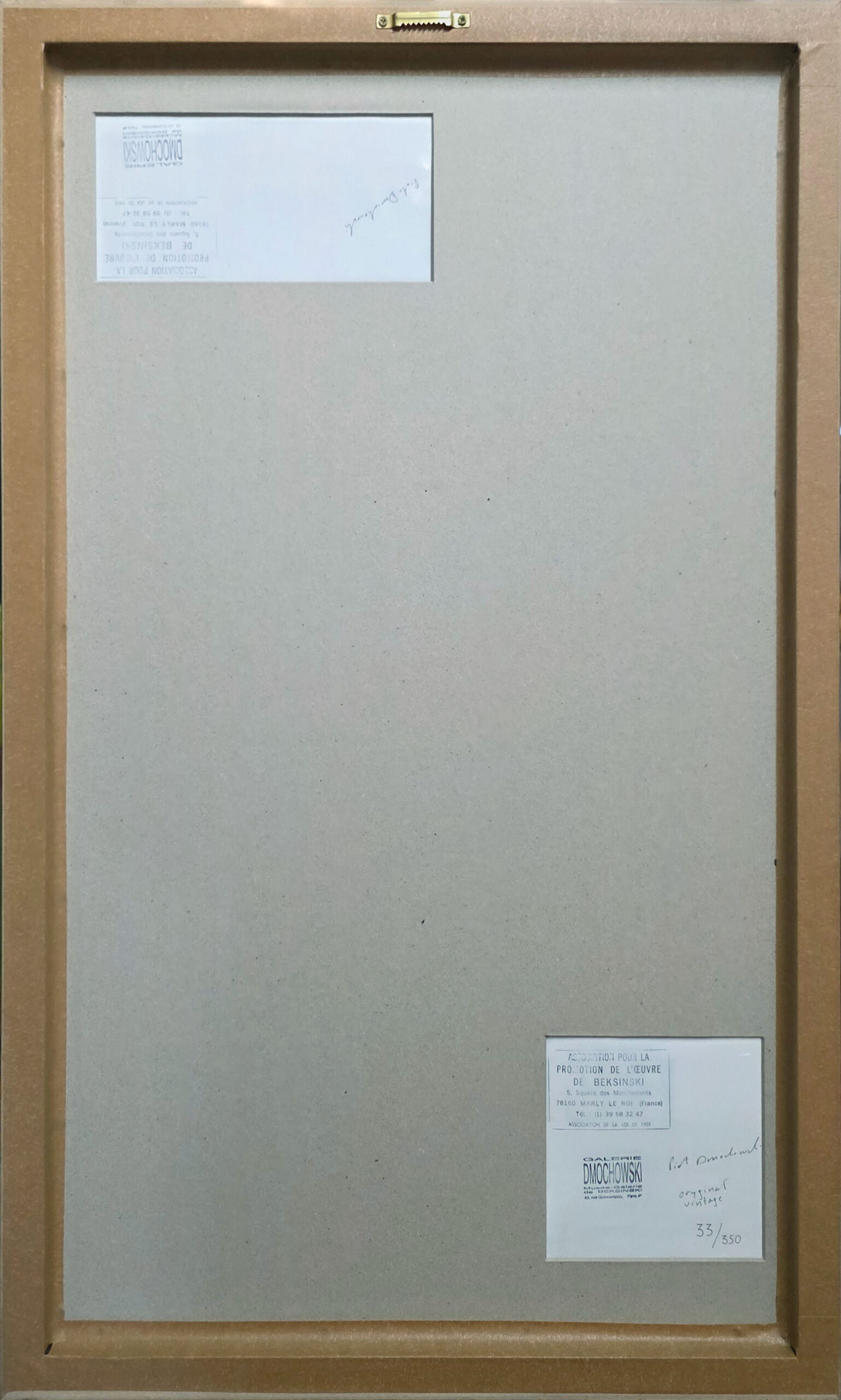 Autentyczność potwierdza pieczęć i podpis galerii Piotra Dmochowskiego, który organizował wystawę i był marszandem artysty. Afisz ma format 80×46 cm (w oprawie 86×52 cm) i jest oprawiony w drewnianą ramę w kolorze przecieranego srebra + antyrefleksyjna szyba.